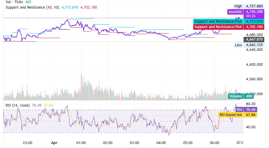 فنيًا، يميل الذهب حاليًا إلى الإيجابية طالما بقي فوق 4,713 دولارًا، لكن الاختبار الحقيقي سيبقى في قدرته على تثبيت اختراق 4,727.880 دولارًا وعدم السقوط مجددًا أسفل مناطق الدعم القريبة. وباختصار، الذهب اليوم أفضل من نهاية مارس، لكنه لم يصل بعد إلى مرحلة الصعود المريح؛ بل لا يزال يتحرك داخل تعافٍ محسوب يحتاج إلى تأكيد أساسي جديد من الدولار والوظائف الأمريكية خلال الساعات المقبلة.