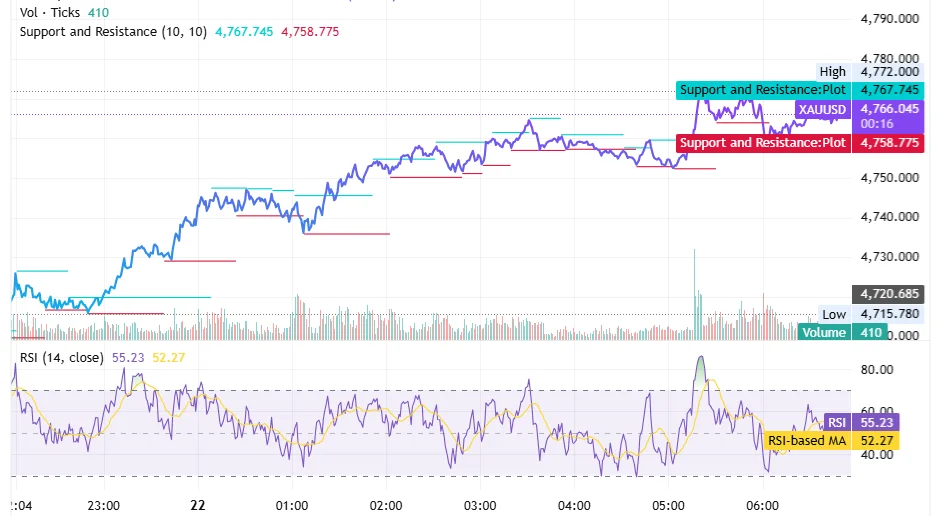 · 4,758.775: أول دعم مباشر، وكسره يضعف زخم الارتداد الحالي.