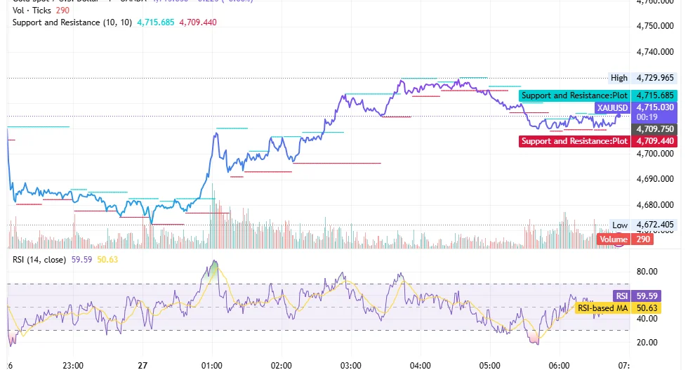 · 4,715.685: أول مقاومة لحظية مباشرة، والثبات فوقها مهم لإبقاء التعافي قائمًا.