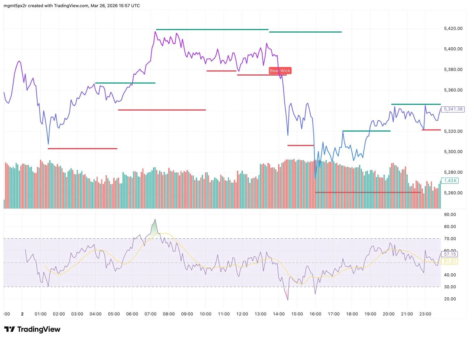 وفي حال تمكن السعر من الحفاظ على التداول أعلى هذه المنطقة، فمن المرجح أن يستمر الاتجاه الصاعد خلال جلسة اليوم مع احتمالات اختبار مستوى 5,360 دولارًا كأول مقاومة، يليه مستوى 5,370 دولارًا، والذي قد يمثل المحطة التالية في حال استمرار الزخم الإيجابي.